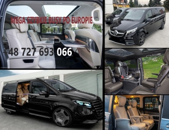 Przewozy odbywają się pojazdami marki Volkswageny Wersje R-LINE, Peugeoty Travel BIZNES VIP, Toyoty BIZNES VIP, Mercedesy V - S Class AMG BIZNES, posiadającymi Klimatyzację 3 strefową o zwiększonej wydajności chłodnego powietrza, Wygodne podgrzewane fotele z alcantary bądź ze skóry wentylowane, Każdy fotel jest regulowany osobno co zapewnia pasażerom niesamowity komfort podróżowania, Podłokietniki siedzeń w przestrzeni pasażerskiej, Tylne rzędy siedzeń wyposażone są w gniazda ISOFIX, Stoliczki, Gniazda 230 V/12 V w przestrzeni pasażerskiej, Oświetlenie do czytania w uchwytach nadokiennych, Ledy w wewnątrz i zewnątrz pojazdu ,Tv-systemy audiowizualne,DVD, Busy z automatycznymi skrzyniami biegów-o mocy od 230 koni mechanicznych, Zawieszenie komfortowe PLUS, Wszystkie szyby atermiczne i ciemne co daje intymność w podroży, Dachy panoramiczne podświetlane ledami, WiFi, Ogrzewanie postojowe i Całe najnowocześniejsze wyposażenie odnośnie bezpieczeństwa pasażerów i kierowcy oraz inne udogodnienia. Auta klasy PREMIUM.